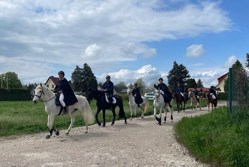 Unser Ritt führte uns zur Novalisschule Bad Tennstedt, der Staatlichen Gemeinschaftschule „Friedrich von Hardenberg“ in Greußen über das Seniorenzentrum „Am Waidhof“ in Greußen bis zum Schloss in Grüningen und dem dortigen Pflegeheim „Sophie von Kühn“.